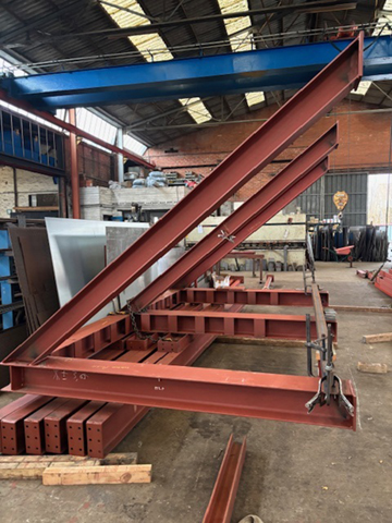Standaard gestraalde balken in voorraad. De poutrellen worden op maat gezaagd.